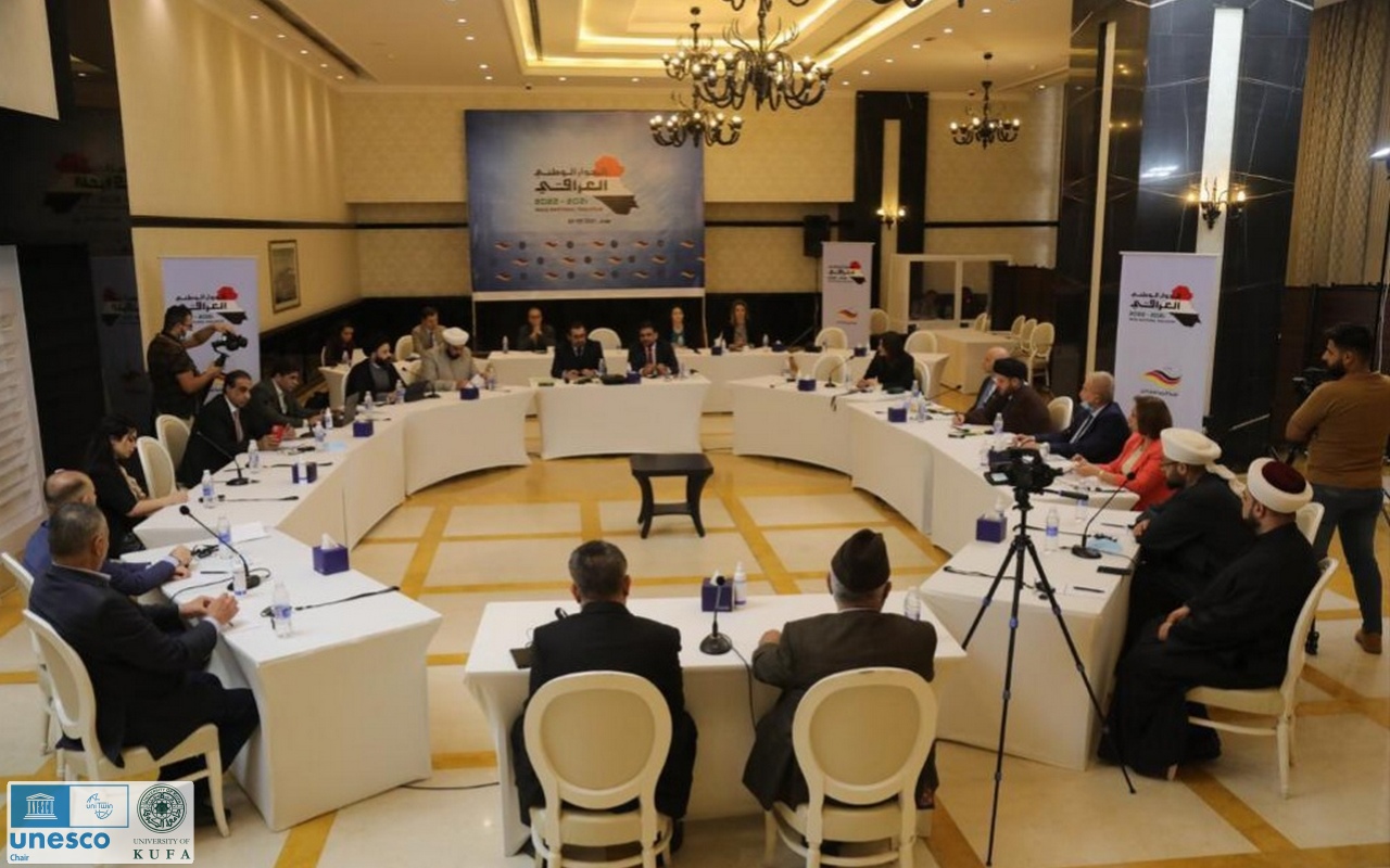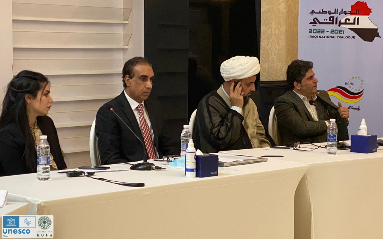 Dr. Alaa Shatnan, the Director of the UNESCO Chair participated in the events of the Conference Iraqi National Dialogue. where Conference Held in Baghdad for two days from 29 to 30 May, with the broad participation of civil society organizations, government institutions, members of parliament, and representatives of all religions, doctrines, and nationalities in Iraq. The conference sessions focused on the country, citizens, Iraqi identity, diversity management, democracy, and the upcoming elections. The Chair participated in the third table event, which discussed (the diverse Iraqi identity and how to employ diversity in institution building). The UNESCO Chair put forward seven recommendations and proposals adopted by the Conference centered on the experience of the Chair and Kufa University in activities contributing to the reduction of extremism and hate speech and on the importance of preserving heritage as a means of preserving diversity in Iraq.