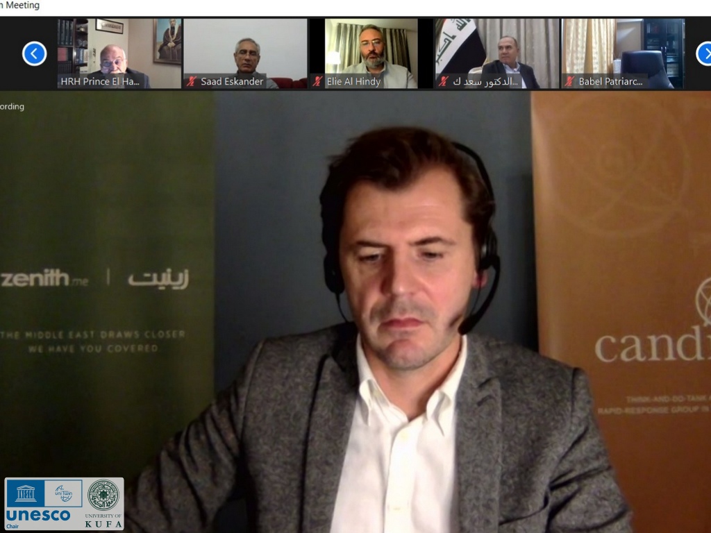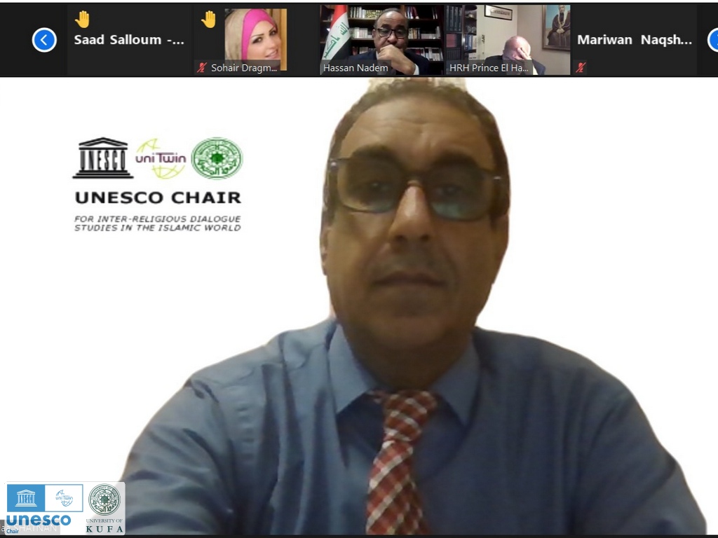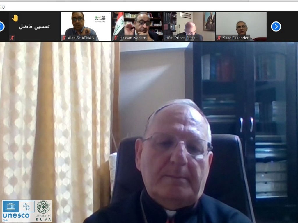 نظّم كرسي اليونسكو لحوار الأديان بالتعاون مع وزارة  الثقافة و السياحة والآثار  ندوةً افتراضيةً عبر التواصل الرقمي بعنوان  (سياسات التنوع الثقافي في الشرق الأوسط) استضاف فيها صاحب السمو الملكي الأمير الحسن بن طلال بحضور نخبةٍ من المثقفين والمفكرين العرب والعراقيين ، ادار الندوة الدكتور حسن ناظم وزير الثقافة والسياحة و الآثار.
