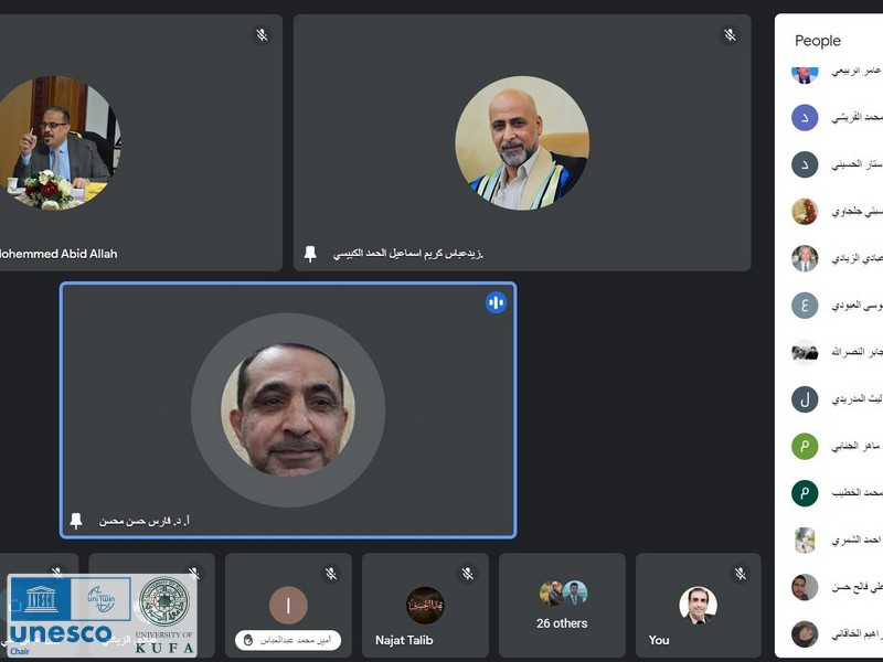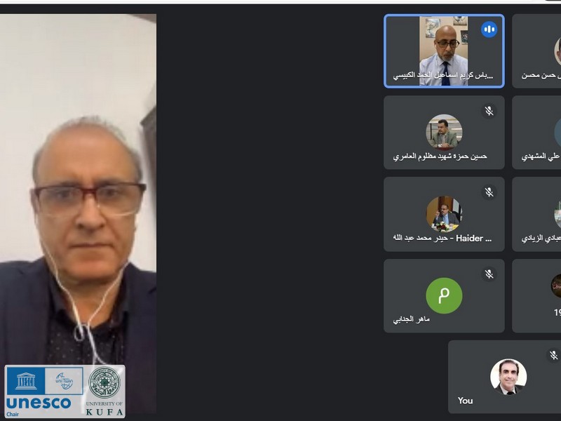 عقد كرسي اليونسكو لحوار الأديان في جامعة الكوفة بالتعاون مع مركز كربلاء للدراسات و البحوث في العتبة الحسينية المقدسة الندوة الالكترونية الموسومة :(زيارة الأربعين و أبعادها الإنسانية في التراث الحي لمنظمة اليونسكو).