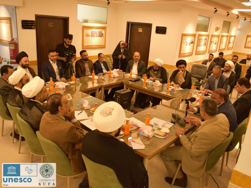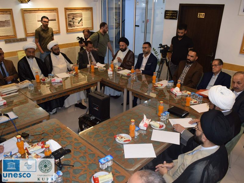The UNESCO Chair at Kufa University held a symposium in cooperation with the Imam Amir al-Mu’minin Center for Specialized Studies and Research in Najaf on Sunday evening, 12/6/2022.