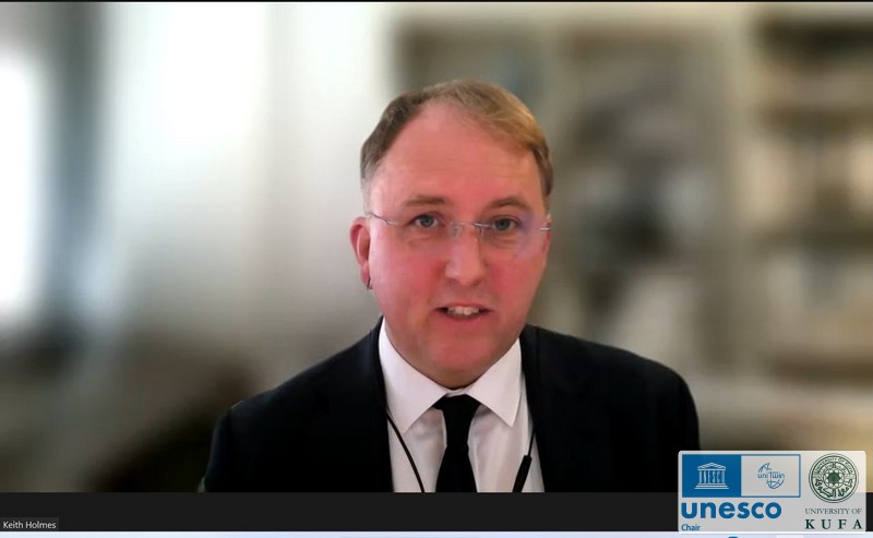 شارك الدكتور علاء شطنان ، مدير كرسي اليونسكو في الندوة الموسومة (تحويل المعرفة من أجل مستقبل أفريقيا : إنهاء الاستعمار في تدريس وتعلم التاريخ الأفريقي).